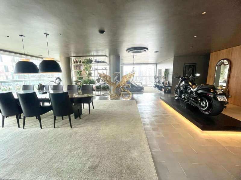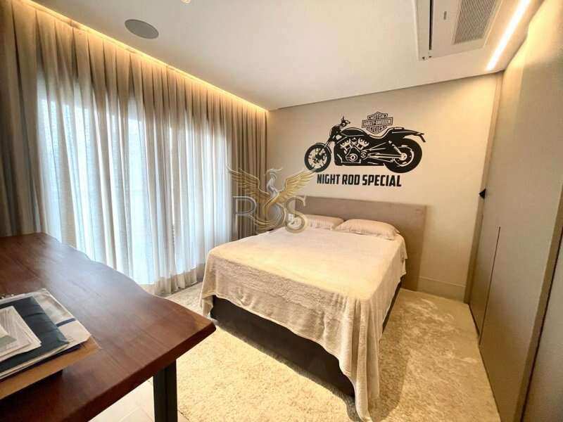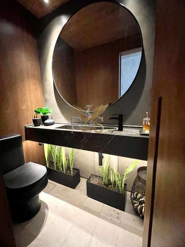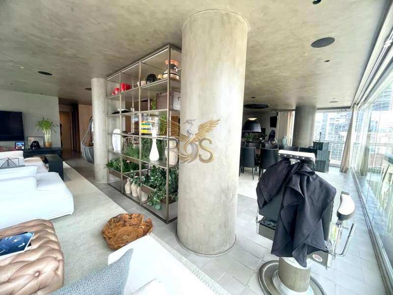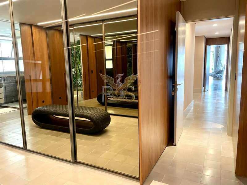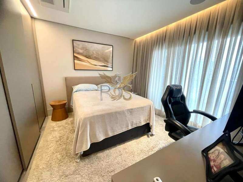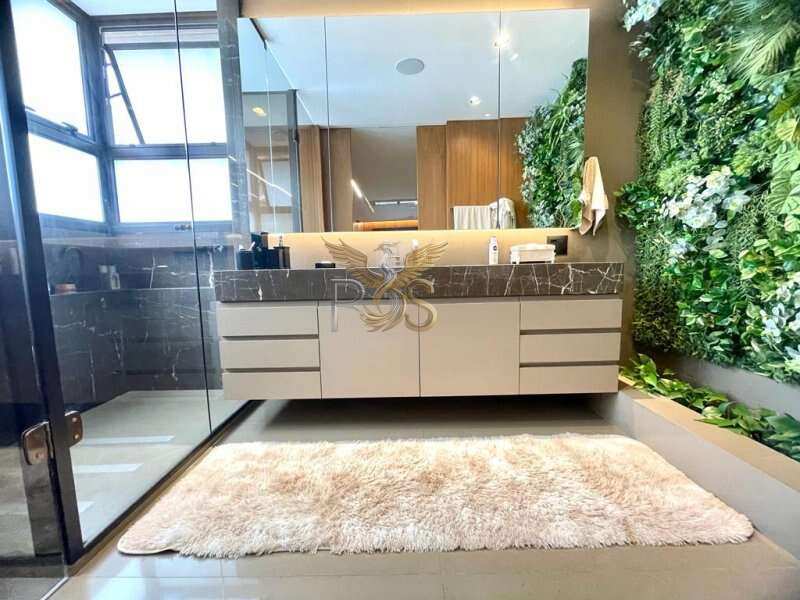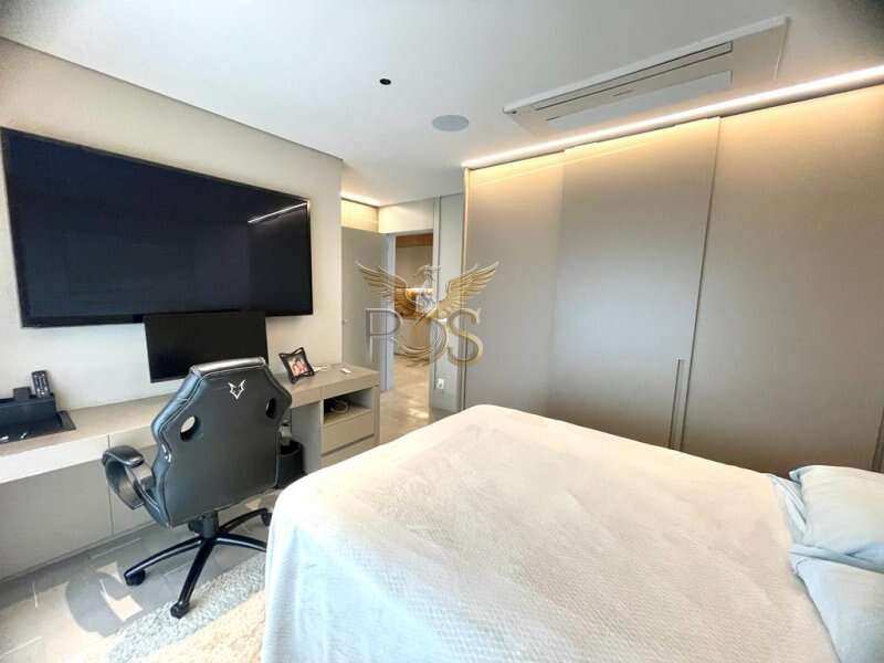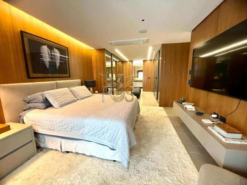 O imóvel tem 3 quartos, sendo 3 suítes, possui 5 banheiros, 3 salas e 5 vagas de garagem.