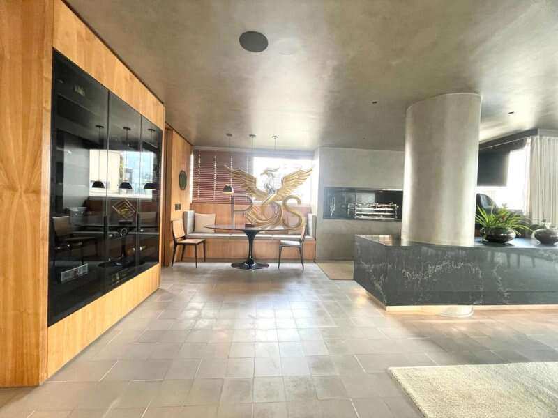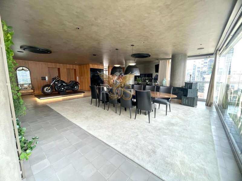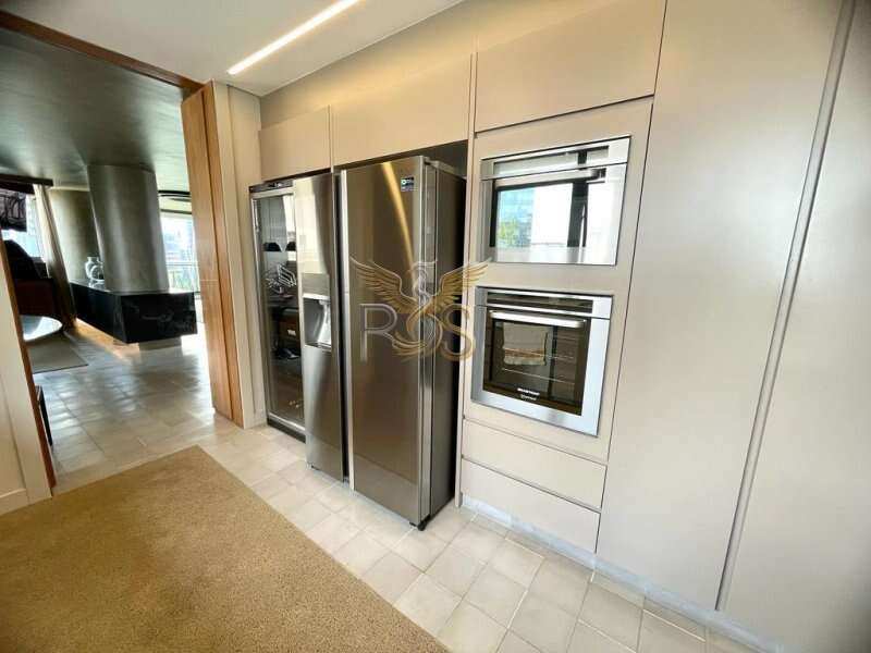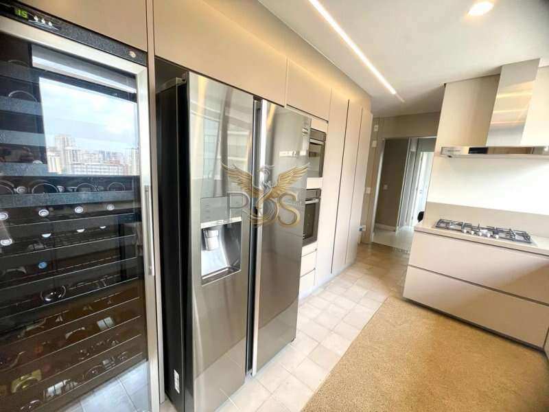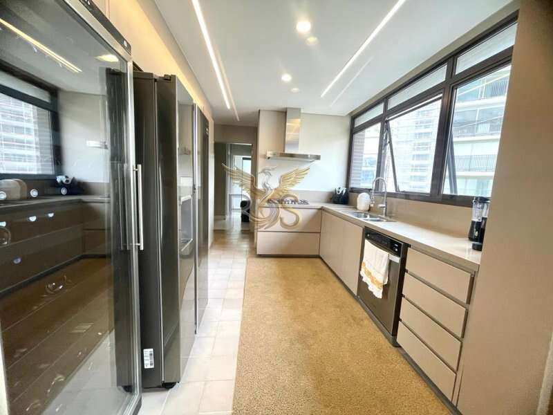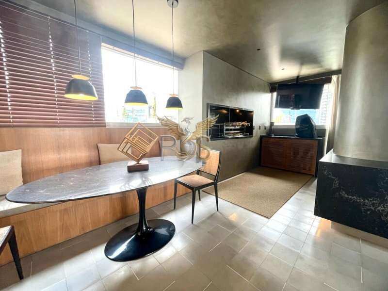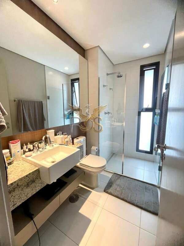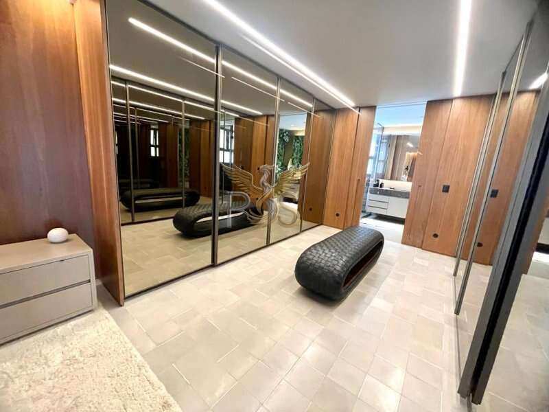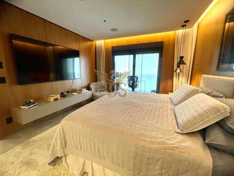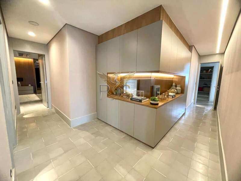 O imóvel tem 3 quartos, sendo 3 suítes, possui 5 banheiros, 3 salas e 5 vagas de garagem.