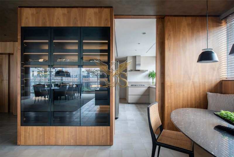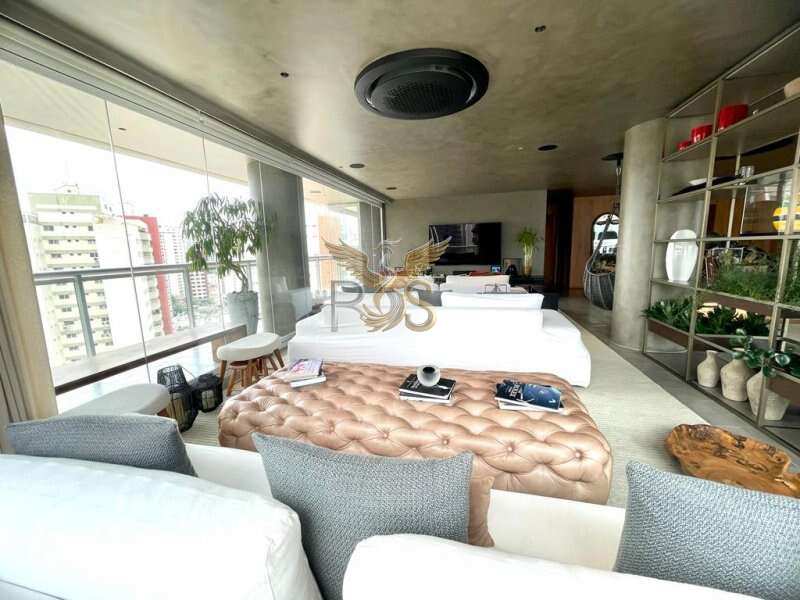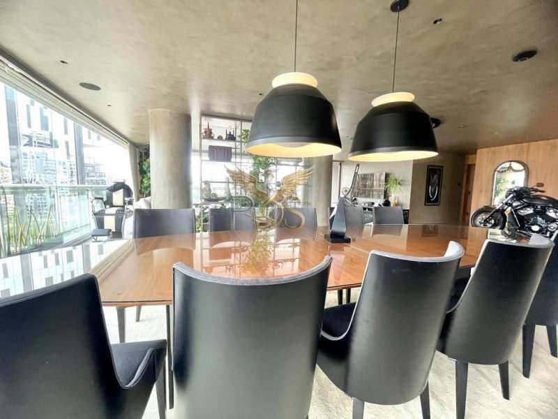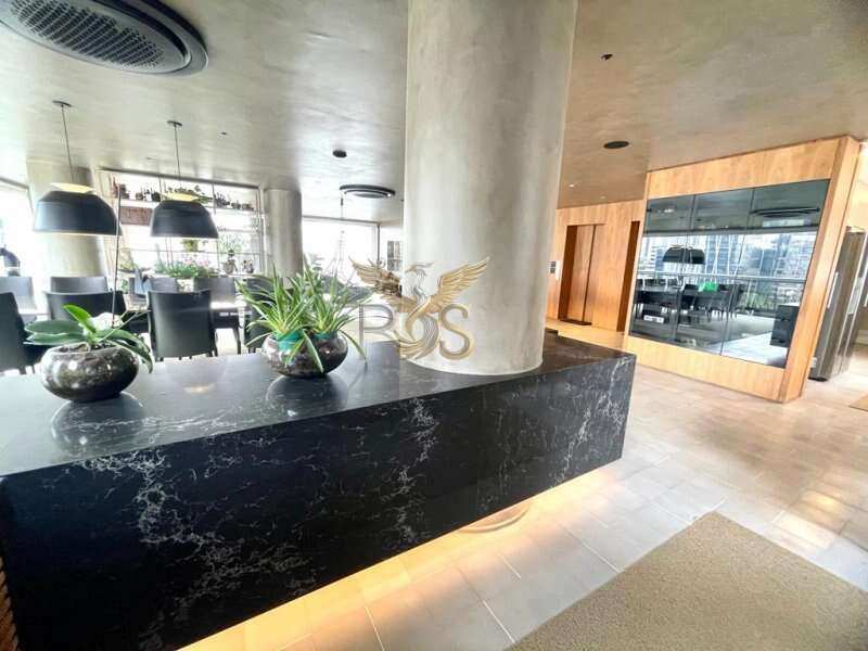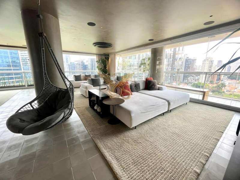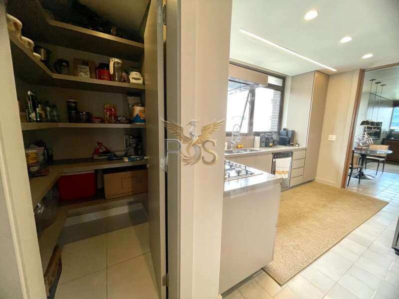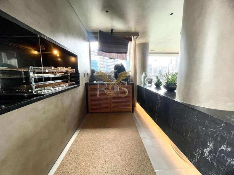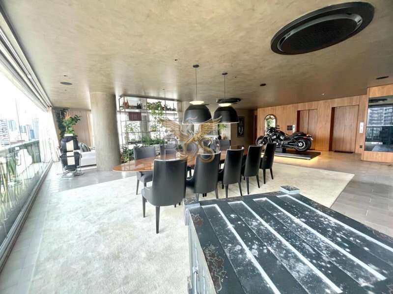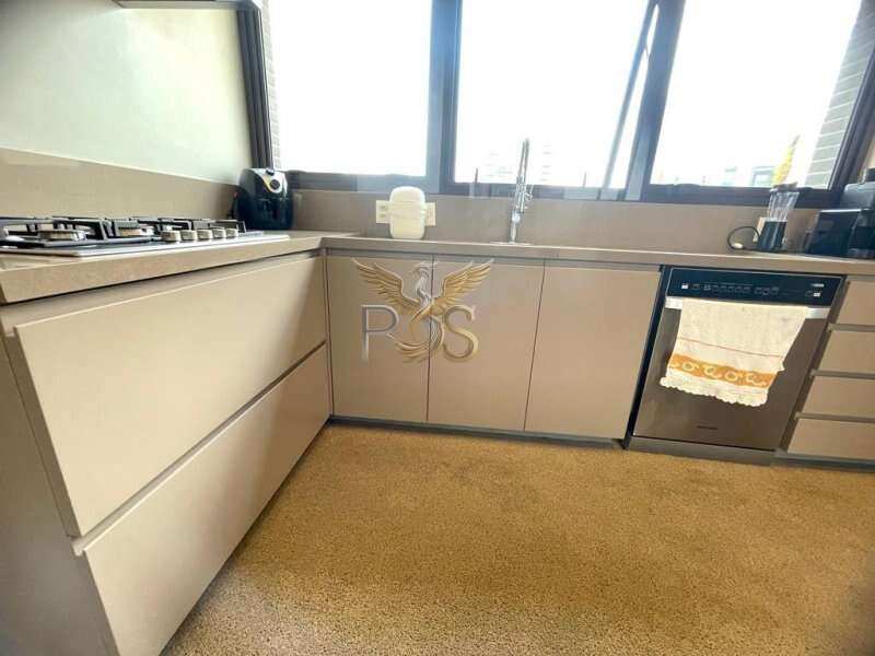O imóvel tem 3 quartos, sendo 3 suítes, possui 5 banheiros, 3 salas e 5 vagas de garagem.