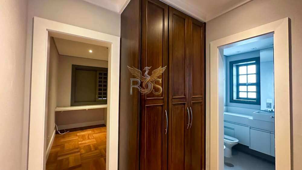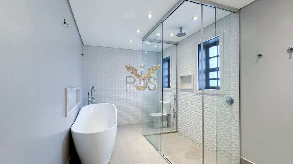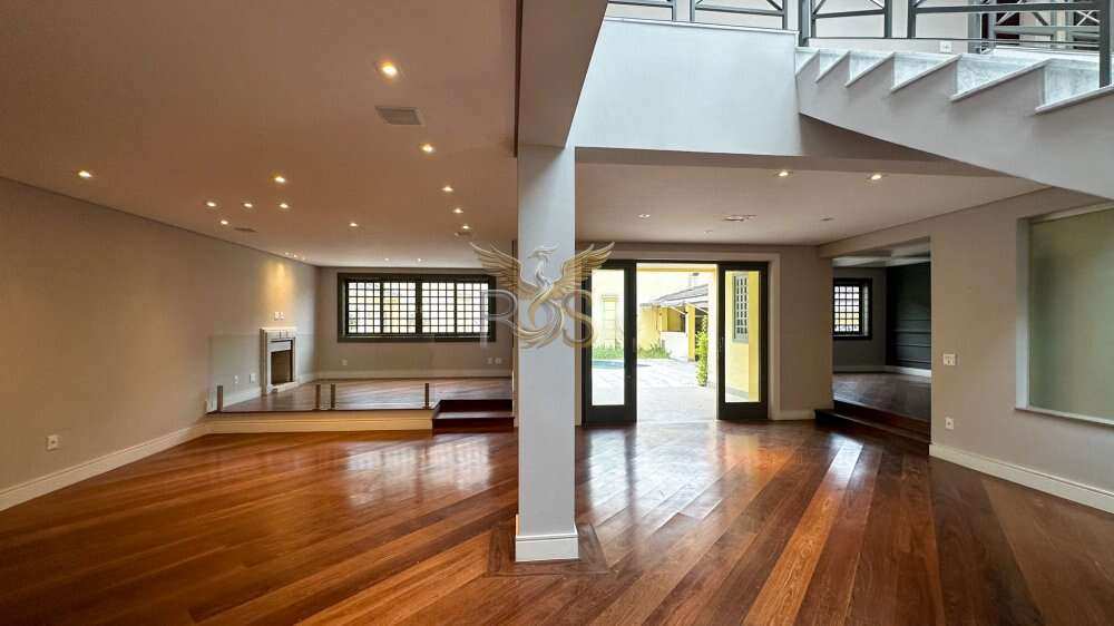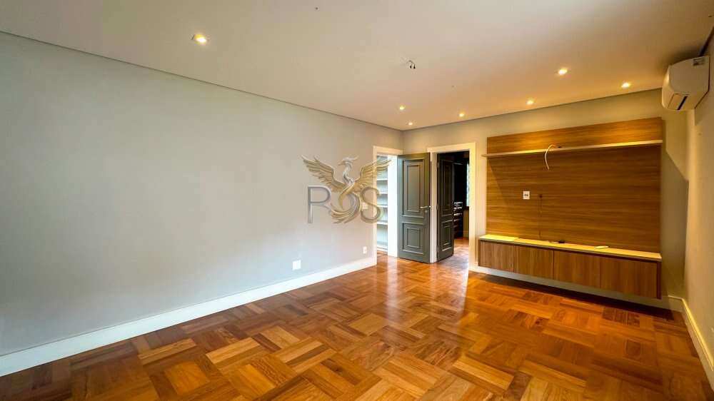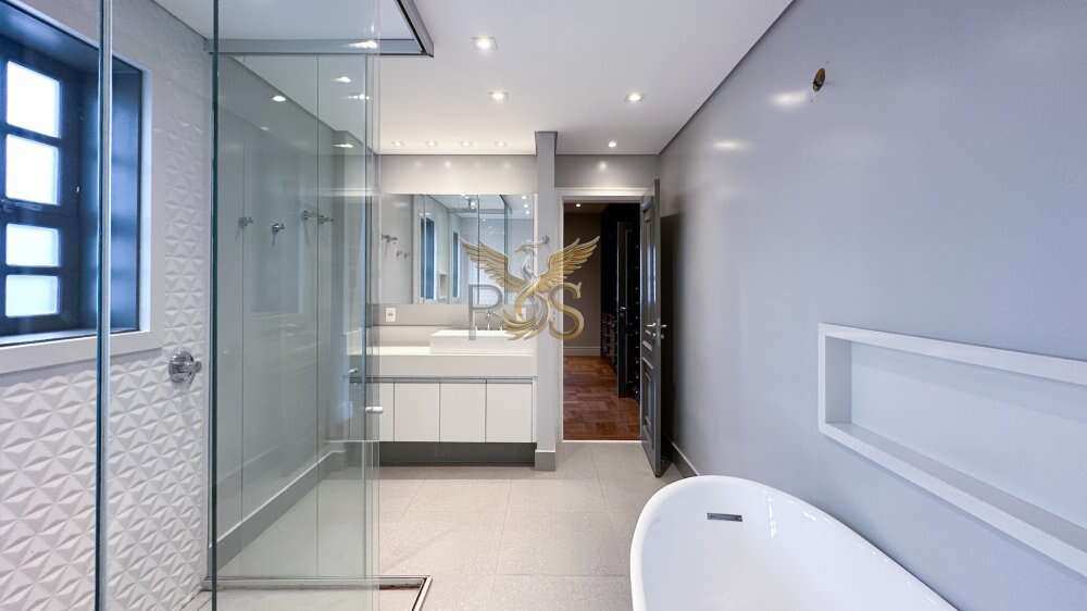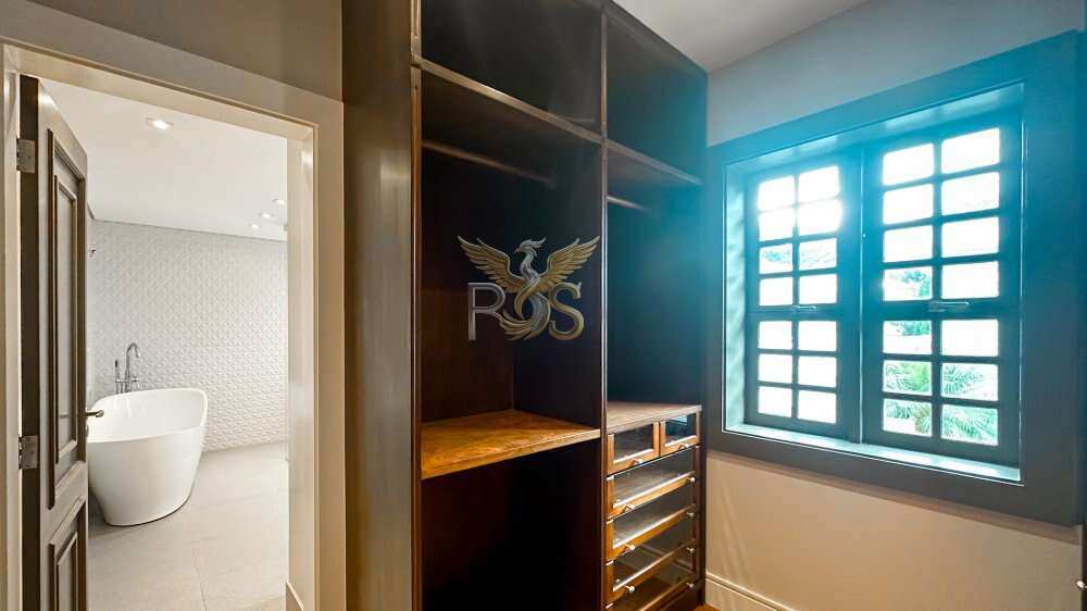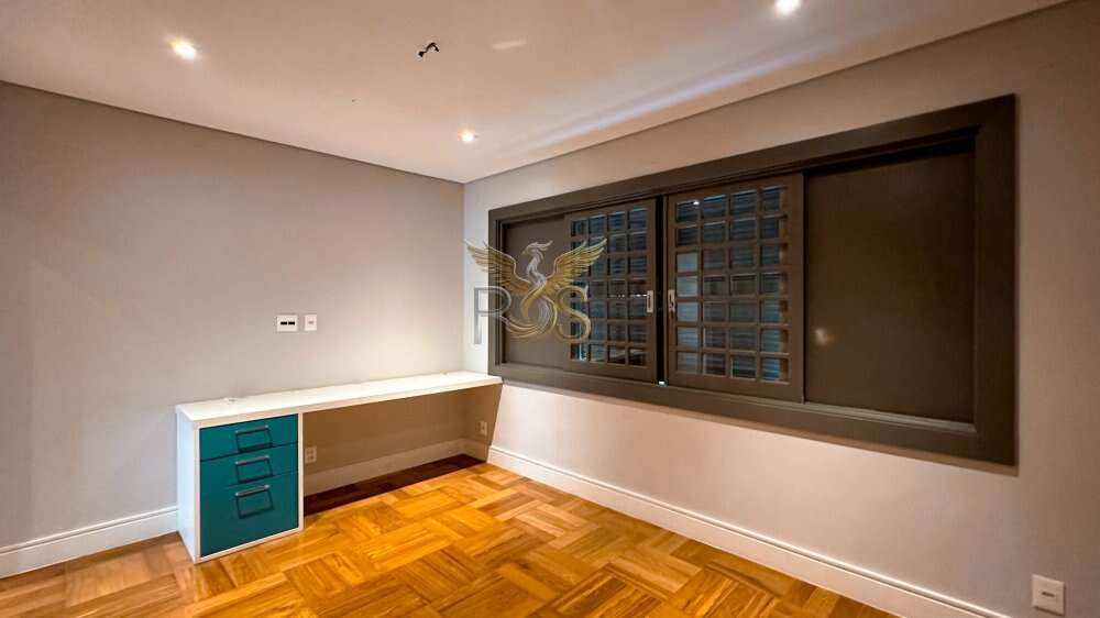 O imóvel tem 4 quartos, sendo 4 suítes, possui 6 banheiros, 4 salas e 3 vagas de garagem.