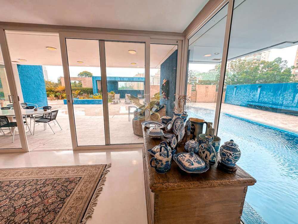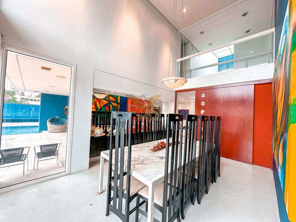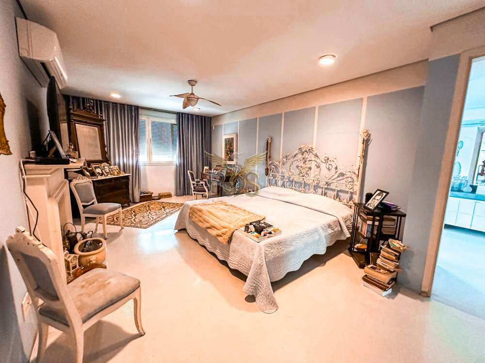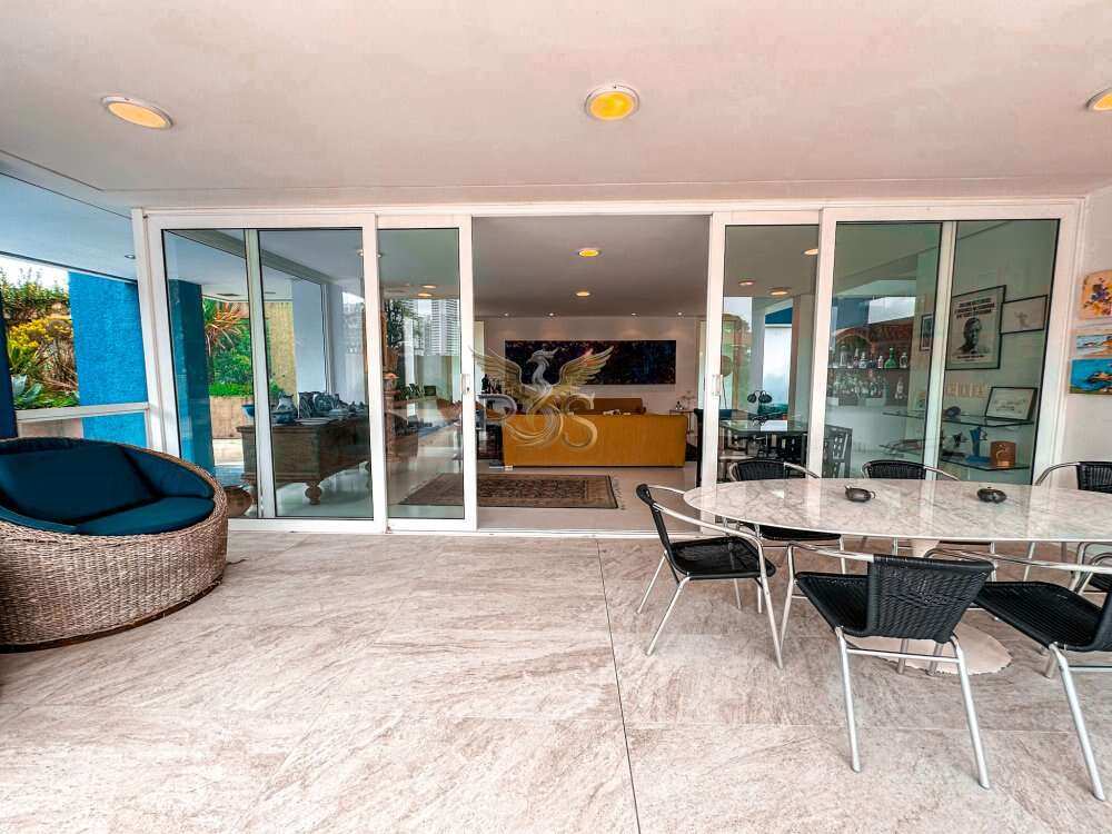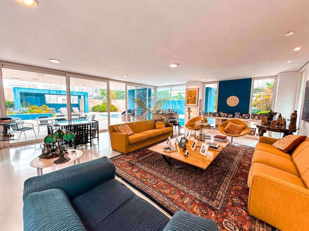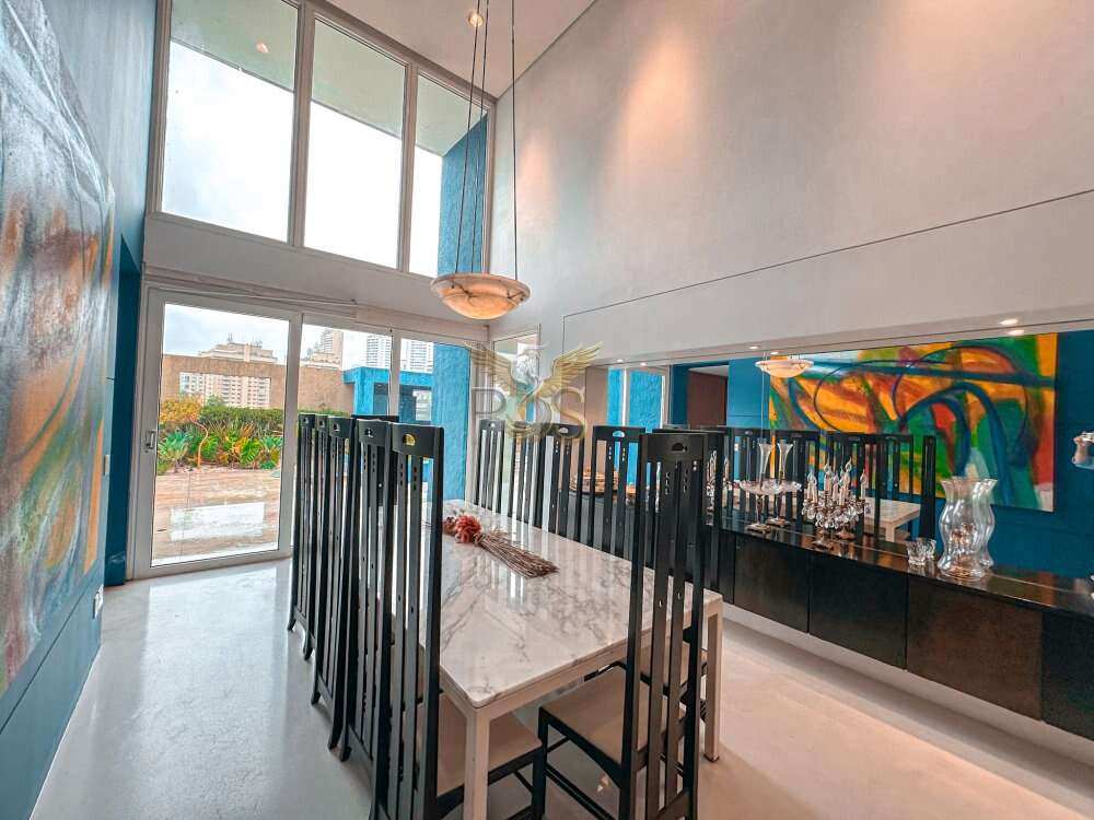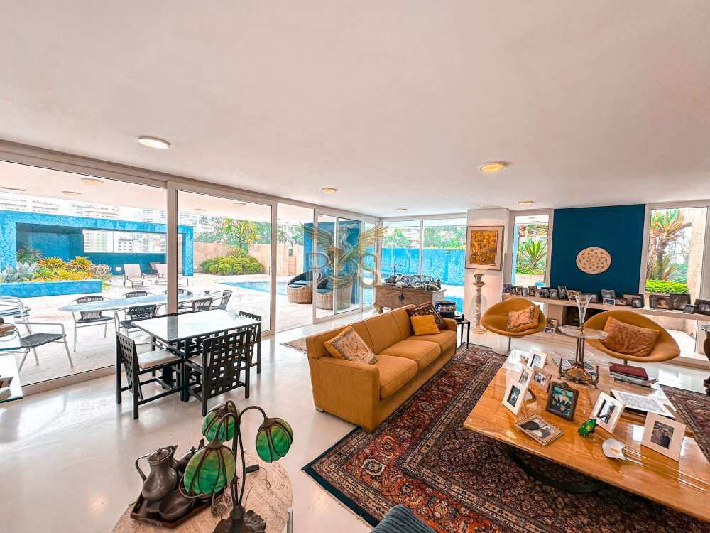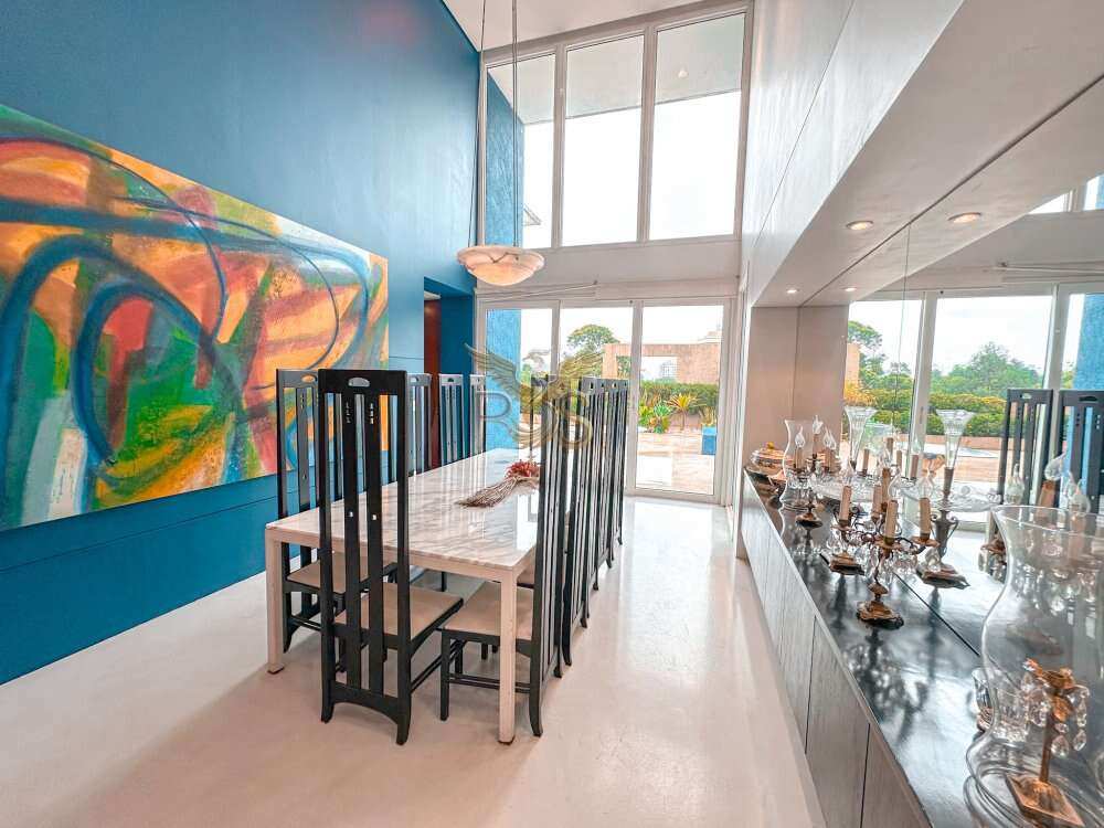 O imóvel tem 6 quartos, sendo 6 suítes, possui 8 banheiros, 5 salas e 10 vagas de garagem.