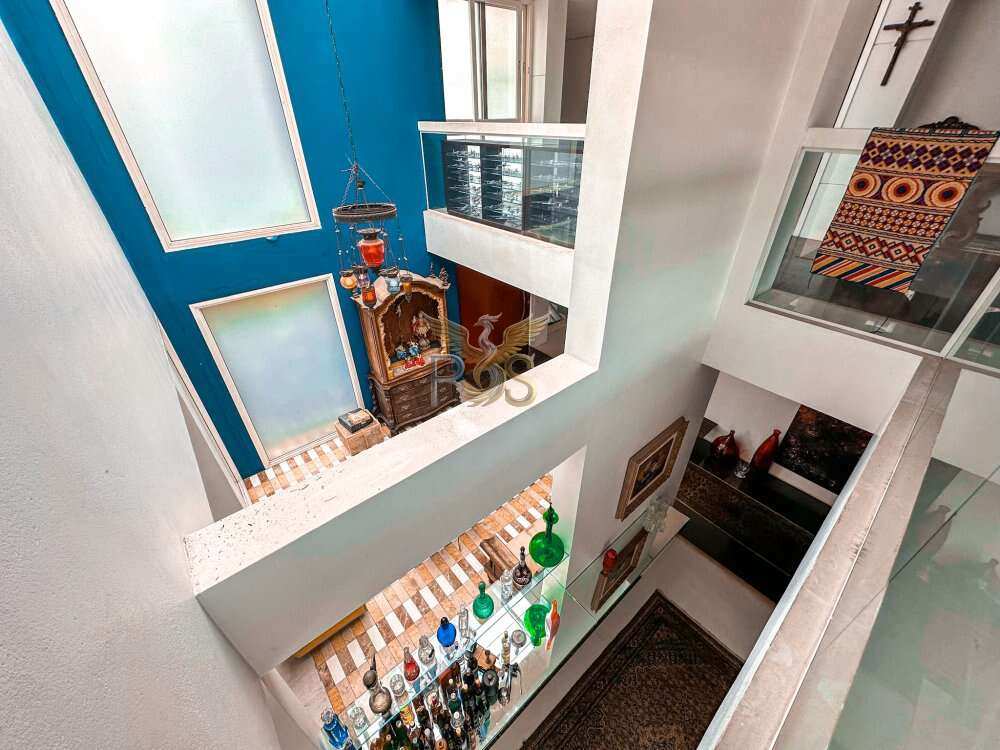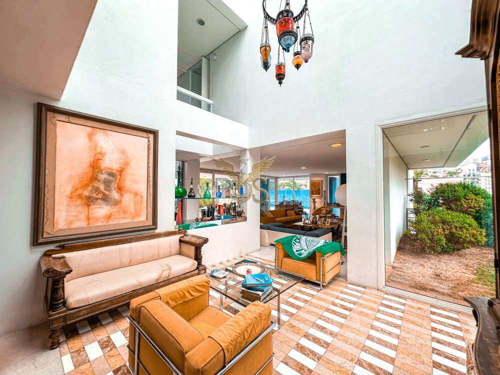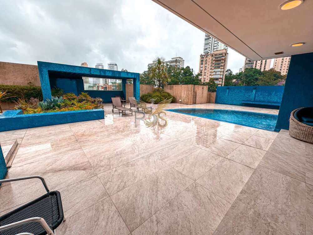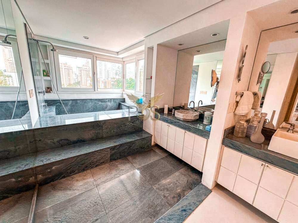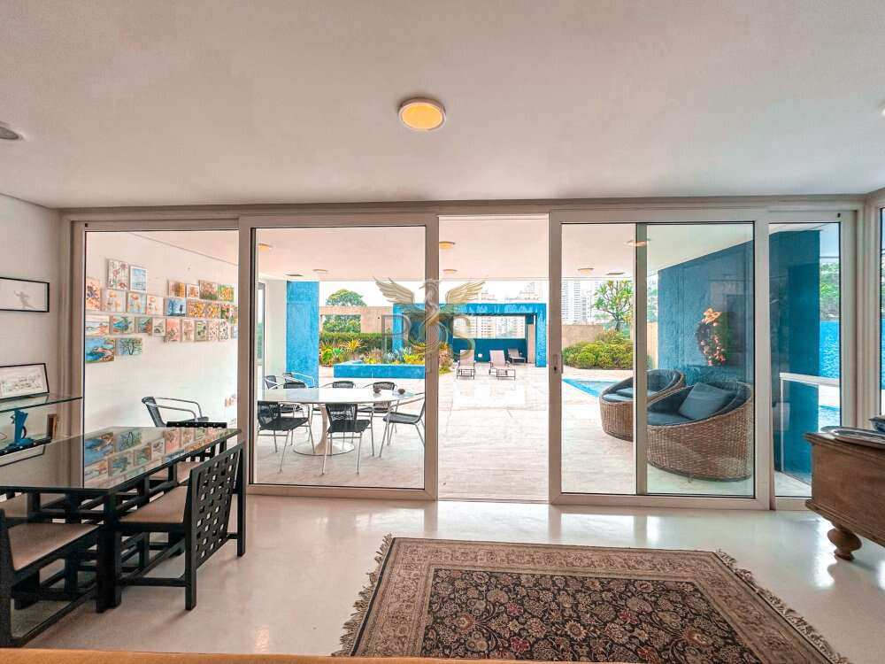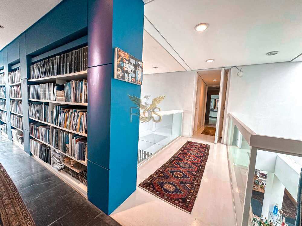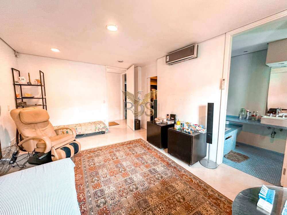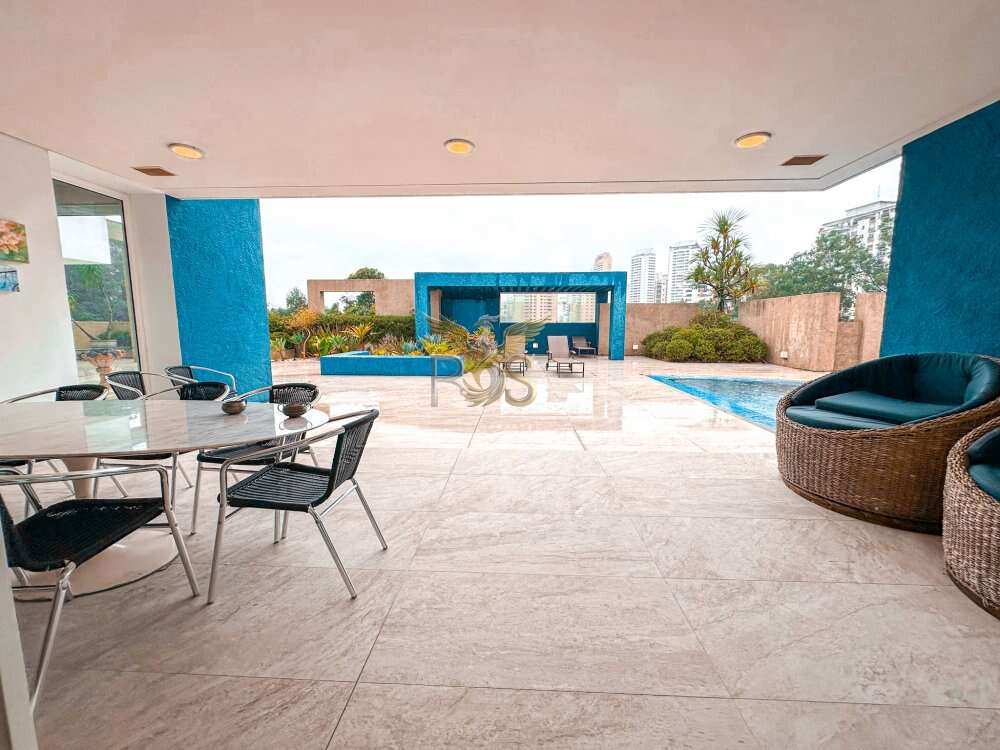 O imóvel tem 6 quartos, sendo 6 suítes, possui 8 banheiros, 5 salas e 10 vagas de garagem.