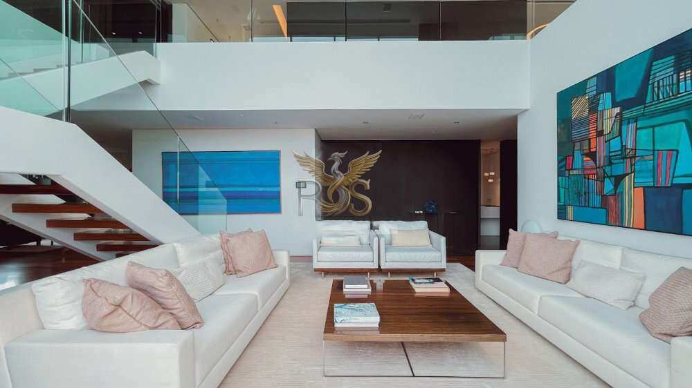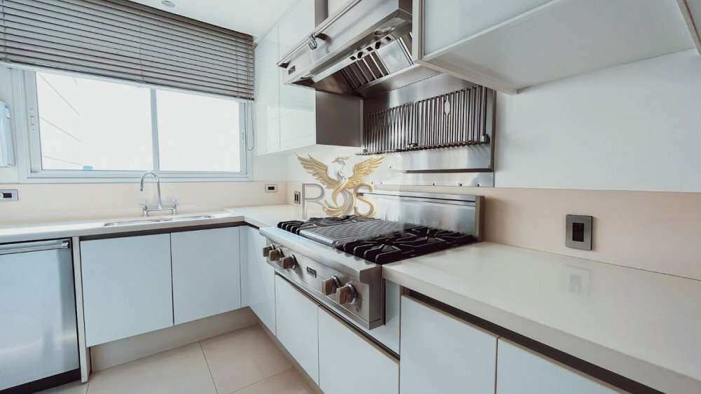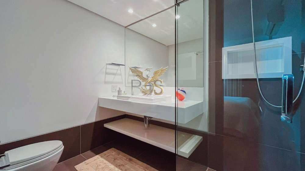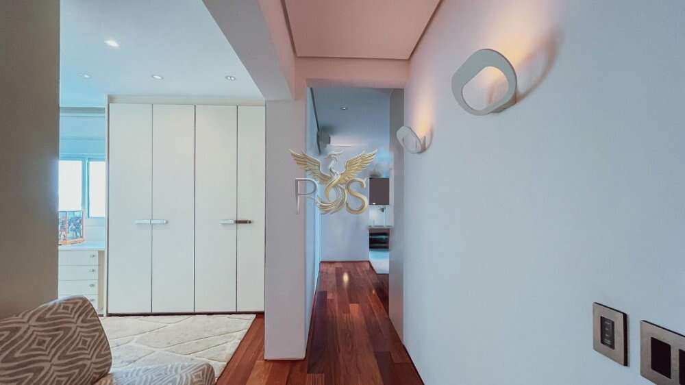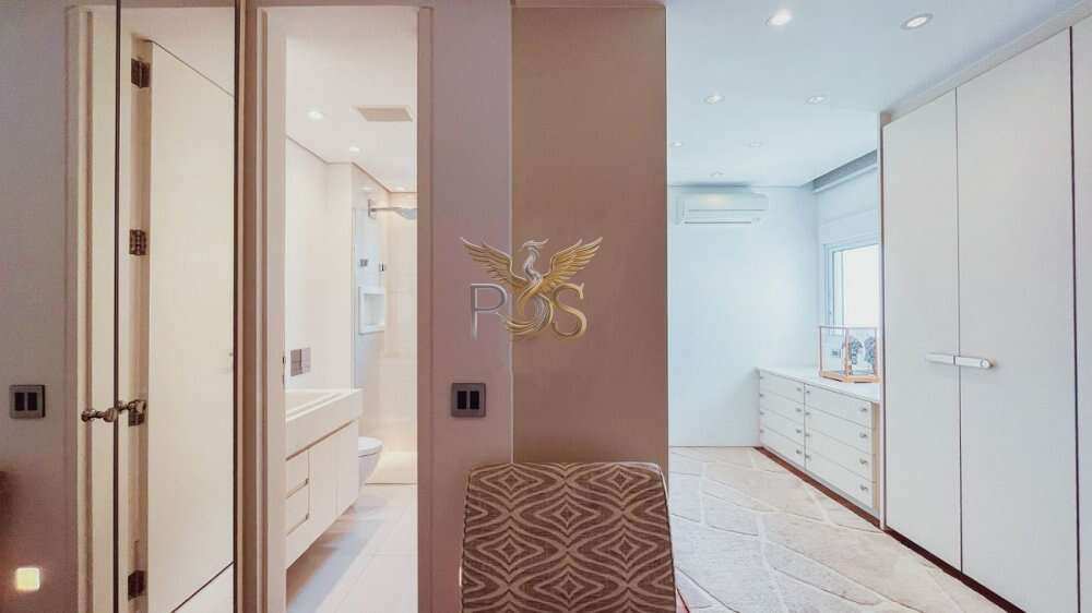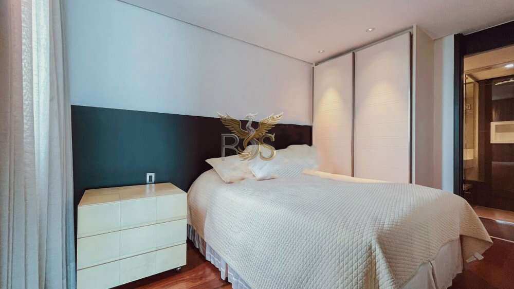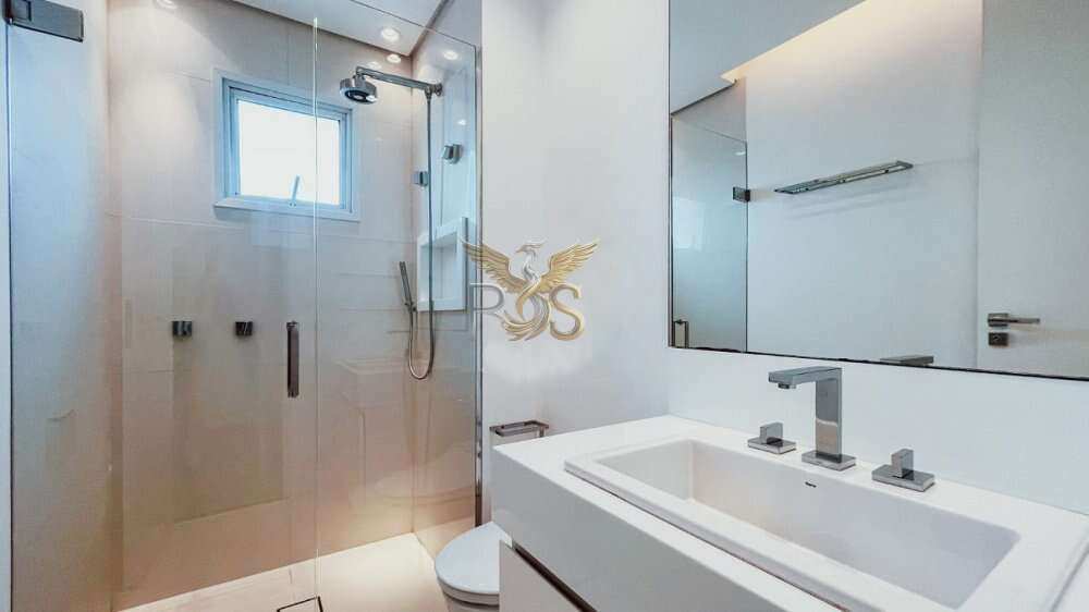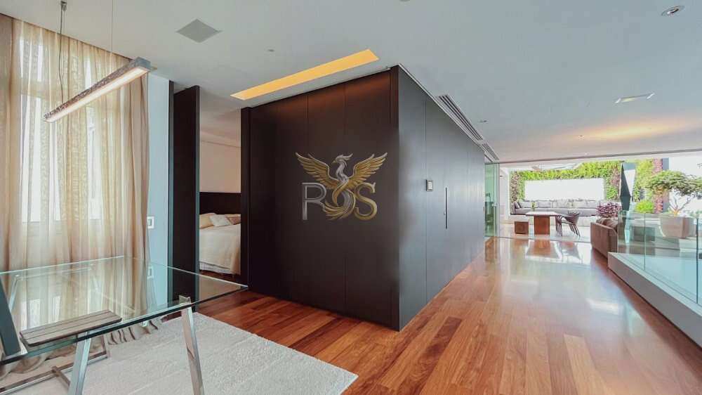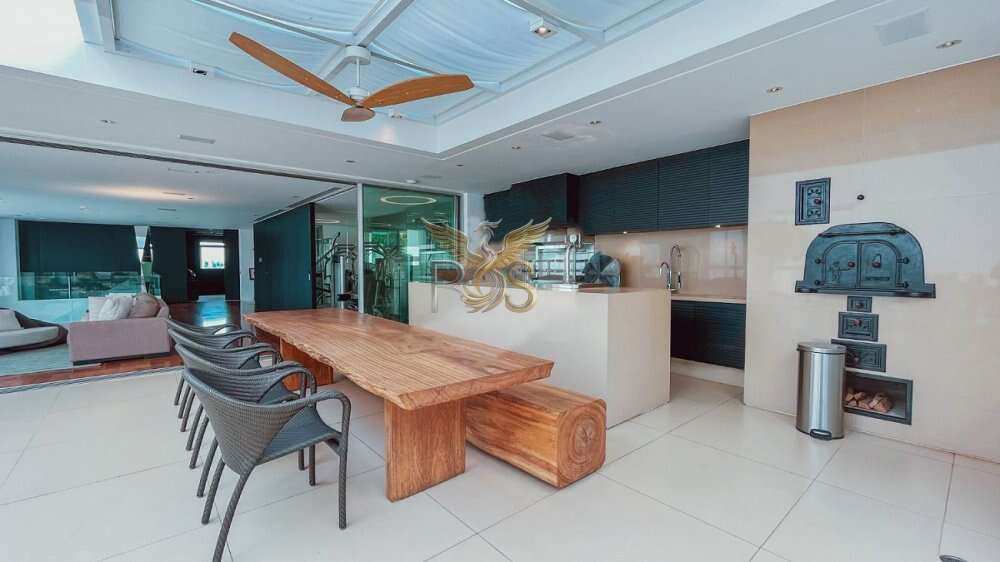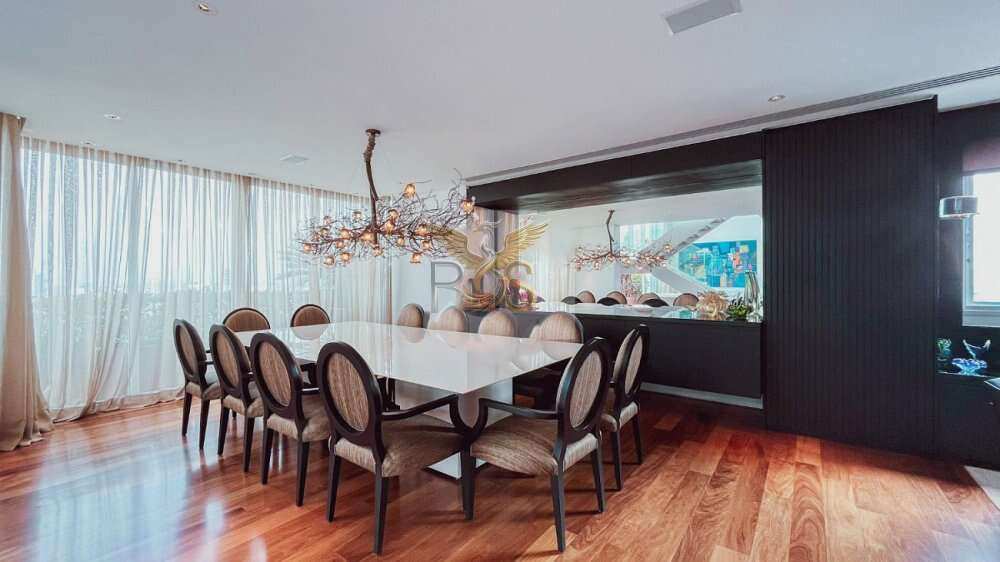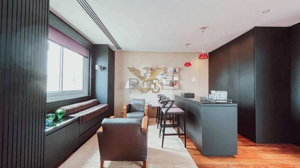 O imóvel tem 4 quartos, sendo 4 suítes, possui 5 banheiros, 4 salas e 6 vagas de garagem.